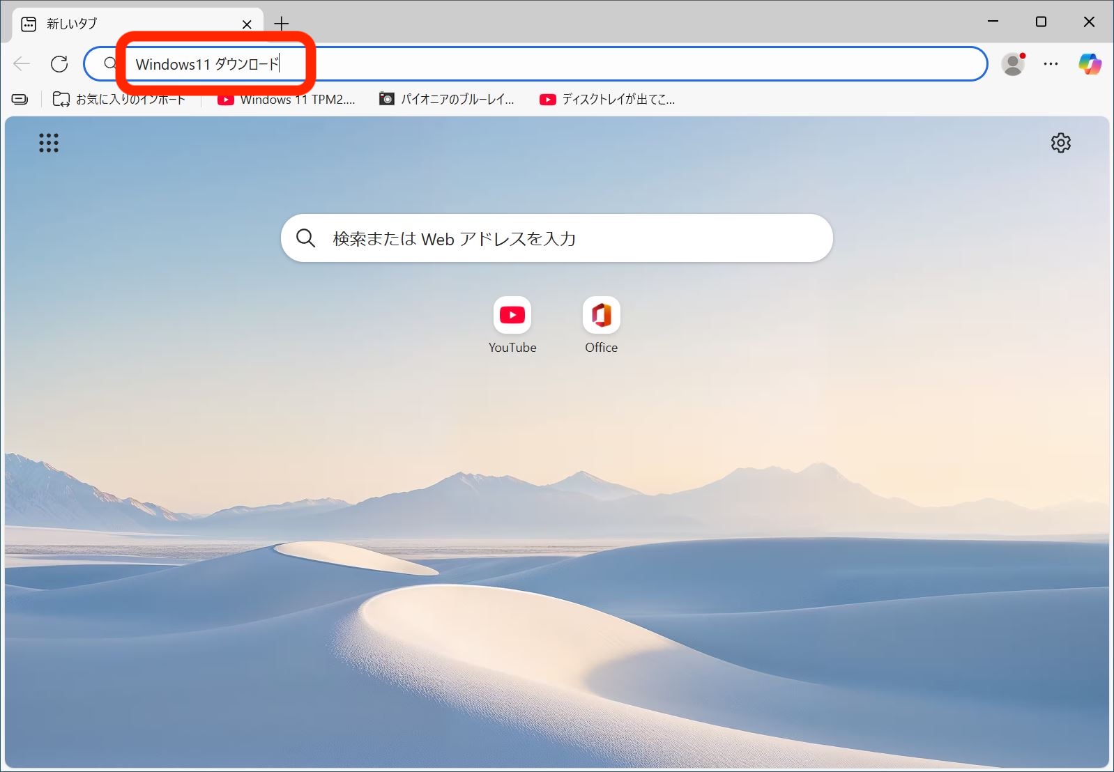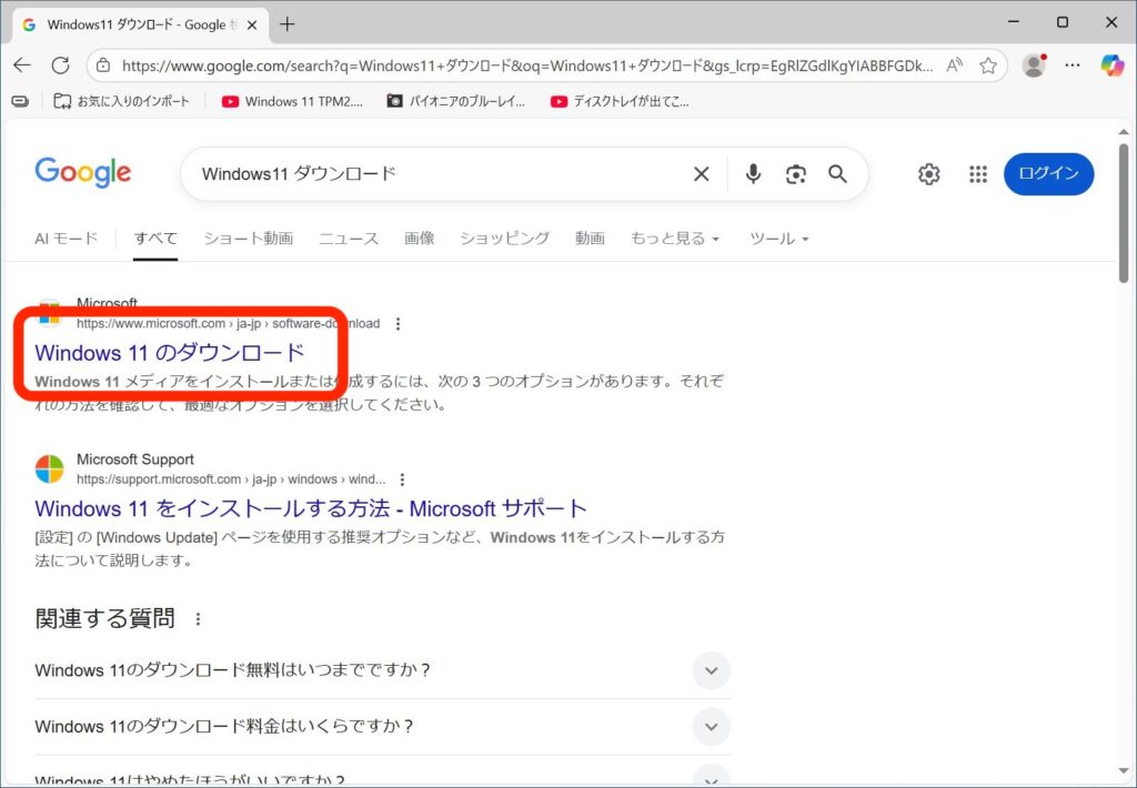 ブラウザを開いて、「Windows11 ダウンロード」と検索してください。