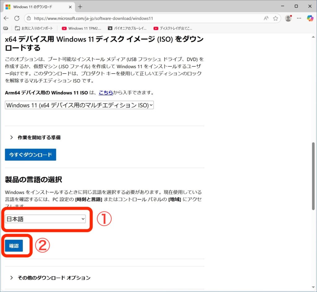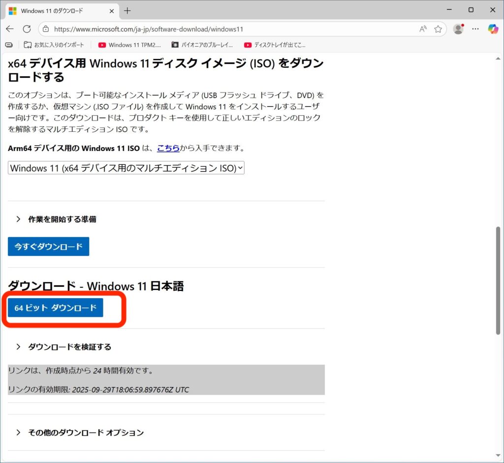 (すでにUSBメモリやDVDなどで、Windows11のインストールメディアを持っている人はそれを使うこともできます。その場合はこの項目は飛ばして、次へ進んでください)